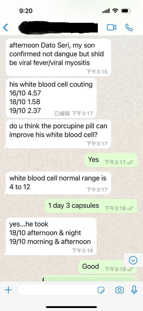 病毒性肌炎 成功案例-病毒性肌炎被诊断患有病毒性肌炎,这是一种以肌肉炎症为特征的疾病 By 金山豪猪枣May 12, 2024Less 1 min read173 Views 一位常客告诉我,他的儿子被诊断患有病毒性肌炎,这是一种以肌肉炎症为特征的疾病,且他的白细胞计数低于正常范围。在我的建议下,他开始每天服用三粒金山豪猪枣。令人惊讶的是,仅在一周内,他儿子的白细胞计数恢复到正常水平,表明他的健康状况有所改善。 ShareTweetShareShare Previous Post成功案例-新冠疫情 Next Post成功案例-中风 你可能会喜欢的阅读 Nothing Found! Ready to publish your first post? Get started here.